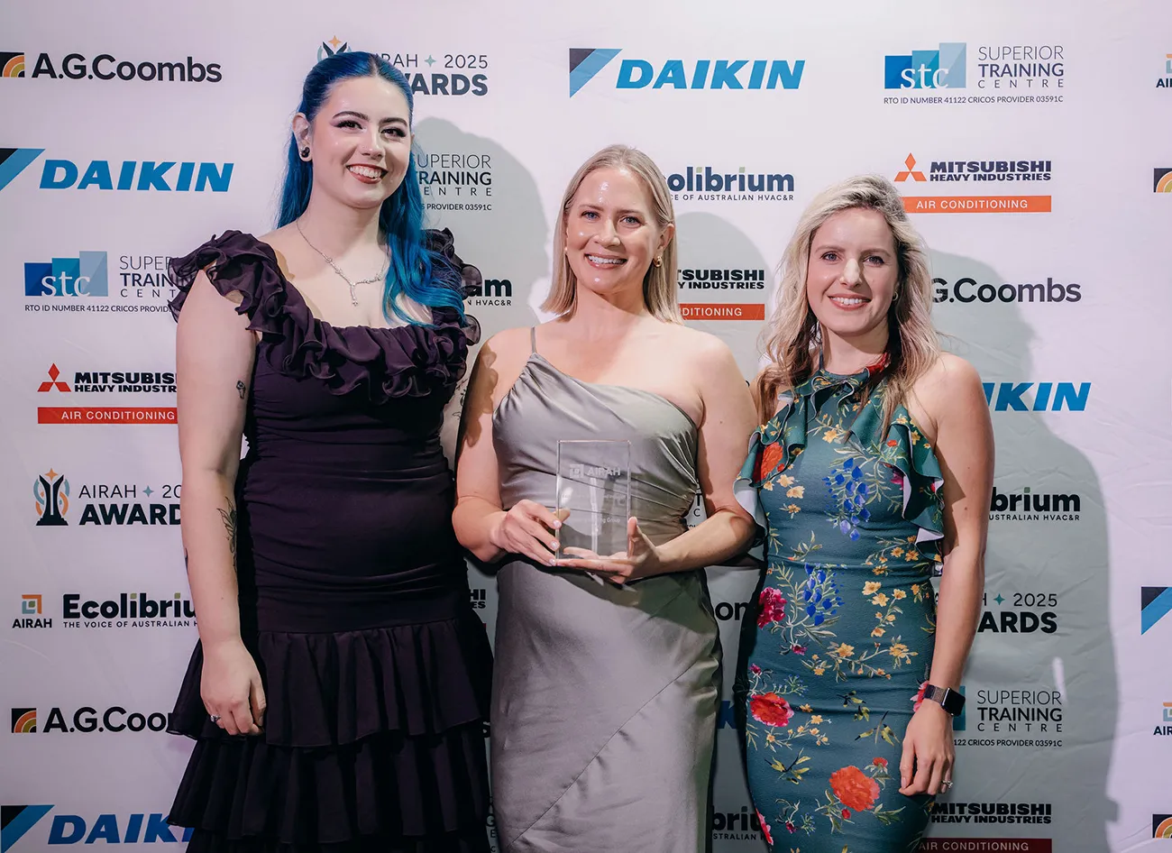 Launched in 2024, Airmaster’s Women’s Working Group is a national, employee-led initiative driving inclusion in a male-dominated industry. Key outcomes include company-funded paid parental leave, a national mentoring program, leadership development for women, and a school holiday care initiative for working parents. In development are pregnancy support guidelines, wellbeing initiatives, and staff development training.